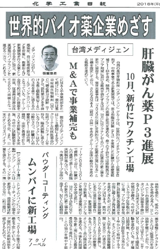 【新聞】日本化學工業日報專訪基亞張世忠董事長